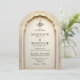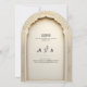Moda del Arco Islámico Elegante Invitaciones Monograma Pareja de Bodas. Anuncie su día especial con una mezcla de sofisticación moderna y elegancia atemporal con nuestra "Invitación Monograma de la Pareja de Bodas Elegante de la Moda del Arco Islámico". Imaginen la belleza de un fondo crema, iluminado suavemente, creando una estética limpia y mínima. El sagrado "Bismillah" corona con gracia la cima, marcando un tono bendito para su celebración y honrando sus tradiciones islámicas. El diseño en forma de arco islámico encuadra tus detalles con un toque contemporáneo, mientras que la moda y la tipografía elegante garantizan que tu mensaje se transmita con gracia. Esta invitación es más que un pedazo de papel; es un reflejo de tu historia de amor, capturando la esencia de una pareja enamorada. Los tonos suaves y el diseño estético crean una invitación que es visualmente impresionante y a la vez muy significativa. Entendemos la importancia de la personalización. El monograma de tu pareja se coloca cuidadosamente en la parte trasera, transformando cada invitación en un querido aguijón. Para honrar su herencia cultural, hemos incluido una cita árabe del Corán, "wa khalaqnakum azwaja", con su hermoso significado, "te creamos en parejas", en la espalda, una adición significativa que celebra la unión de dos almas. Para mayor comodidad, también puede incluir la URL de su sitio web boda en la parte posterior, proporcionando a sus huéspedes acceso fácil a todos los detalles de su día especial. Que esta "Moda del Arco Islámico Elegante Invitación a la Pareja de Bodas en Monograma" sea el preludio perfecto a una celebración llena de amor, alegría y momentos inolvidables.