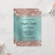 Invitación Monograma de Relieve metalizado turquesa Rosa espu