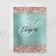 Una invitación glamorosa monogramada de 21 años para ella. Purpurina de oro rosa brillante falso con chispas contra una falsa imagen gráfica de Relieve metalizado turquesa pálido pálido metalizado cepillado. El lujoso monograma de caligrafía en blanco y negro en el reverso puede ser personalizado o borrado. Todos los elementos brillantes y brillantes de este moderno diseño giratorio son gráficos digitales.