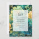 Invite a sus invitados a celebrar su día especial con esta sofisticada y artística invitación a la boda. Con una hermosa mezcla de verdigris (un rico azul-verde) y brillantes acentos dorados florales, este diseño exuberante transmite una sensación de elegancia única y lujo moderno. Personalice con sus iniciales, nombres, fecha de boda, hora y detalles del lugar para una invitación verdaderamente memorable. Perfecto para un boda moderno, una celebración de inspiración Art Déco o cualquier evento con un toque de estilo distintivo.