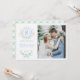 Esta tarjeta de Navidades tiene un diseño trillado con un escudo de renos azul en la parte superior. En el fondo hay un texto rojo que dice "Feliz Navidad". Puedes personalizar con un nombre, año y tu inicial. La parte trasera tiene un patrón de coordinación de enrejado azul y verde.