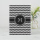 Invitación Monograma del patrón ZigZag de Chevron negro y bla