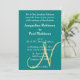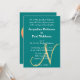 Invitación Monograma dorado verde azulado de puesta de sol co