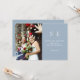 Esta moda de boda azul polvoriento minimalista de la tarjeta de agradecimiento se puede personalizar con sus iniciales de monograma, 2 fotos especiales de bodas y un mensaje especial de agradecimiento. Diseñado por Thisisnotme©