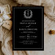 Invitación Monograma elegante de Escudo de Leafy Blanco Negro