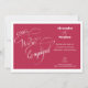 Una invitación de compromiso minimalista elegante con caligrafía manuscrita, nombres personalizados y monograma en color Viva Magenta
