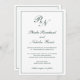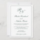 Estilo tradicional Invitación todo en una boda con un diseño sencillo y clásico con su monograma inicial y sus nombres en una caligrafía elegante dentro de un borde delgado. La parte trasera tiene los detalles de tu huésped, lo que elimina la necesidad de una tarjeta separada. Todos los elementos de diseño están en verde forestal sobre un fondo blanco y pueden cambiarse en la herramienta de edición de diseño. Estas elegantes Invitaciones Todo en Una Boda son perfectas para un boda formal.