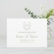 Esta elegante boda ahorra la fecha presenta un fondo blanco con un monograma rodeado por un escudo/marco botánico con una cinta en verde salvia. Personalízalo para tus necesidades. Puedes encontrar productos coincidentes en mi tienda.
