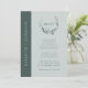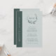 Todo en uno con detalles de la tipografía audaz moderna Esmeralda y la invitación a la boda de la corona verde salva... Nuestro sabio "All in One" y la invitación a una boda verde esmeralda presenta una tipografía serif audaz combinada con un texto sans serif para una simple y moderna invitación a una boda monogramada. La corona esmeralda verde y los ilustraciones frondosos son productos botánicos artesanales... dando un aspecto único y elegante a las novias modernas. La parte posterior de la invitación contiene todos los detalles que normalmente se verán en las tarjetas separadas del paquete del boda, incluyendo la hora y el lugar de recepción, las opciones de alojamiento, el sitio web del boda, RSVP e información del registro. Esta moderna y minimalista invitación a las bodas en casa fue diseñada para ser moderna, ahorrar tiempo y conservar árboles. Todo el texto de ejemplo se puede revisar fácilmente con su propia información sobre la plantilla de personalización.