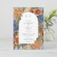 Invitación Monograma floral de óxido de Naranja azul y rojo r