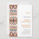 Todo en uno con detalles sobre la invitación a la boda moderna del monograma africano... Nuestra única invitación a una boda africana con un motivo único "Todo en uno" presenta un diseño tribal de ladrillo rojo, naranja quemado y negro junto a tu texto de invitación y las iniciales de un monograma de novia y novio. El BACK de la invitación contiene todos los DETALLES que normalmente se verán en tarjetas separadas en el paquete del boda, incluyendo la hora y el lugar de recepción, opciones de alojamiento, sitio web del boda, RSVP e información del registro de regalos. Esta moderna invitación a la boda fue diseñada para ser a la vez elegante y de bajo costo... por no hablar de ahorrar tiempo. Todo el texto de ejemplo se puede revisar fácilmente con su propia información sobre la plantilla de personalización.