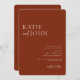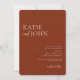 Invite a sus amigos y seres queridos a su moderno boda boho con esta invitación rústica con letras caligráficas y fondo de terracota. Personalice los detalles del boda y el monograma en la parte posterior.