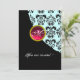 Invitación MONOGRAMA NEGRO Y AZUL DE LA DAMASCA, rubí rojo