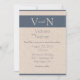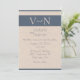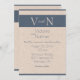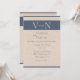 Fondo arrugado de imitación vintage con color de acento azul profundo, tipografía y escritura. Monograma de novia y novio además de la invitación. El cuerpo de la invitación y los colores del acento son del mismo color azul oscuro. Un estilo moderno, vintage y rústico.