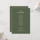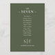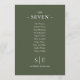 Estos elegantes números de mesa de boda verde oliva se pueden personalizar con su monograma y el plano de los asientos de los huéspedes en una tipografía de moda. Las tarjetas se imprimen en la parte delantera y trasera (de doble cara). Diseñado por Thisisnotme©