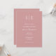 Esta moda, minimalista y polvorienta invitación a una boda rosa rosa puede ser personalizada con sus iniciales de monograma e información sobre el día de la boda. Con toda la información especial sobre el día de la boda, incluyendo su RSVP, alojamiento y detalles adicionales. Diseñado por Thisisnotme©