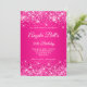 Una elegante invitación de 50 años monogramada. Puede personalizar el texto para otra celebración de cumpleaños de un hito. El arte digital presenta un purpurina rosa brillante y llamativo con chispas extra contra una imagen oscura rosa brillante y caliente. El lujoso monograma de caligrafía en blanco y negro se puede personalizar. Todos los elementos brillantes de este moderno diseño de jovencita son gráficos digitales.