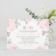 Elegante y romántico diseño de invitación a bodas de estilo paisajístico presenta un monograma de los nombres de novias y novios, información de la ceremonia de matrimonio gris de color verde y ocre enmarcada por un borde de rosas suaves con hojas verdes/grises. Las flores tienen una hermosa acuarela pintada.