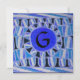 Invitación MONOGRAMA SOLAR, blanco turquesa azul brillante
