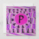 Invitación MONOGRAMA SOLAR, rosa fucsia negro blanco brillant