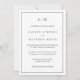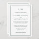 Simple Invitación de boda todo en uno con un diseño moderno y elegante con su monograma de dos letras en la parte superior y sus detalles rodeados de un delgado borde. Todos los elementos de diseño son verdes sobre un fondo blanco y pueden cambiarse a cualquier color que desee en la herramienta de edición de diseño. El reverso cuenta con todos los detalles de su boda, lo que elimina la necesidad de una tarjeta separada, lo que convierte a este hotel en una suite de invitados para bodas de bajo coste. Una moda y un diseño de diseño, ideal para una pareja minimalista.