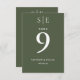 Estos números de tabla modernos de boda verde oliva de moda se pueden personalizar con sus iniciales de monograma, nombres y fecha especial. Diseñado por Thisisnotme©