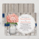 Invitación Monogrammed Mason Jar Coral Navy Hydrangea Boda