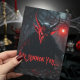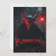 Dé un paseo por el lado oscuro y realmente destacar con esta aterradora invitación de la fiesta de halloween con demonios de ojos rojos. El frente tiene un demonio diabólico de ojos rojos que se arrastra a través de oscuros y embrujados bosques con el mensaje "Te citamos" en una fuente de sangre goteante. La parte posterior tiene un fondo rojo ardiente de sombra negra, con texto negro vintage. Fije el tono para su noche de espanto desde el principio con esta inolvidable invitación a la fiesta. Creado por Simply Farmhouse Press.