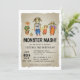 Invitación a la fiesta de cumpleaños de los niños de Halloween con fondo acuático, el título 'MONSTER MASH', un grupo de monstruos de aspecto divertido y una plantilla de cumpleaños divertida que es fácil de personalizar.