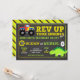 The fun headline “Rev up your engines for a dino-mite party” adds the perfect touch of adventure and dinosaur excitement, making this invitation stand out for joint celebrations. The clean and spacious layout is easy to edit with names, ages, and party details.
