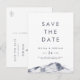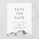 Esta simple montaña ahorra la postal de fecha es perfecta para un boda al aire libre. El moderno diseño minimalista presenta una marina abstracta y un paisaje montañoso de color azul pizarra.