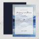 Esta elegante invitación de boda presenta un diseño sereno de acuarela con siluetas de montañas superpuestas en tonos variables de azul, creando una atmósfera tranquila y soñadora. El diseño está orientado verticalmente con un espaciado equilibrado, mostrando una tipografía sofisticada que combina fuentes script y serif para un toque refinado. Los elementos personalizables permiten la personalización, mientras que la paleta de colores fríos realza el ambiente general de elegancia y anticipación, lo que la hace perfecta para parejas que buscan una estética sofisticada e invitante para su día especial.