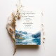 Comience su viaje al matrimonio con el esplendor sereno de nuestra Invitación a la Serenidad de la Montaña del Glaciar. Esta invitación capta la esencia de un destino boda glaciar con un exquisito ilustracion acuático de un prístino glaciar montañoso y su tranquilo lago. Los tonos azul hielo, gris pizarra y blanco alpino se mezclan perfectamente con los tonos tierra de la taupe y el verde del bosque, reflejando la paleta natural de un paraíso de gran altitud. El guión elegante y la letra en bloque en una marina profunda ofrecen un contraste sofisticado, invitando a los huéspedes a una celebración serena. Esta invitación es una promesa de un boda envuelto en la grandeza de la naturaleza, perfecto para la pareja que encuentra romance en el exterior.