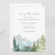 Esta elegante invitación a una boda incluye un bosque acuático y paisajes de montaña, detalles minimalistas y texto de caligrafía. La parte posterior tiene detalles adicionales y un código QR que hace que las tarjetas de gabinete sean opcionales. Es clásico pero moderno y seguro que te preparará para tu boda de destino de montaña.