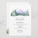Esta elegante invitación a una boda incluye un bosque acuático y paisajes de montaña, detalles minimalistas y texto de caligrafía. La parte posterior tiene detalles adicionales y un código QR que hace que las tarjetas de gabinete sean opcionales. Es clásico pero moderno y seguro que te preparará para tu boda de destino de montaña.