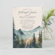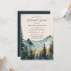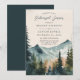 Esta invitación para la cena de ensayo presenta una hermosa ilustración de montañas y pinos en tonos de azul y verde, que recuerda a un paisaje montañoso sereno. La ilustración está colocada sobre un fondo cremoso que le da un aspecto cálido y acogedor.