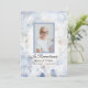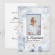 Invite a sus huéspedes a recordar a su ser amado un año después de su fallecimiento con la elegante invitación conmemorativa del Aniversario de la Muerte de la Caridad de las Tintas Azules. Esta bonito personalizado florida celebración del tributo a la vida incluye una fotografía floral de acuarela digital pintada de pétalos de flores de clavel blanco con un tono azul claro pálido. Personalízalo con el nombre, fecha de nacimiento y muerte y la foto del fallecido. Disponible en forma de invitación impresa para correo y/o como descarga digital para compartirla digitalmente.