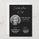 Esta invitación presenta un estilo minimalista sencillo y moderno con una caligrafía de guión hermosa y fuentes sans serif y serif sobre un fondo negro. Puedes personalizar con una foto de tu ser querido e información sobre el funeral/servicio conmemorativo. Puedes personalizar la invitación a cualquier manera que quieras recordar y honrar la memoria de tu ser querido. Sólo hay que tener en cuenta que la frase "Celebración de la vida", "servicio" y "recepción" no puede ser editada. Si lo desea, puede cambiar el color o eliminarlo de la invitación de invitación al servicio de funeral. Acabo de darle al personalizar la invitación.