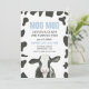 MOO MOO! Watercolor cow with cow print and light blue plaid back 2nd birthday party invitation.