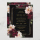 Invitación Moody Black Burgundy Rubor Floral Peonies Boda