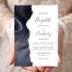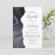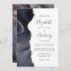 El borde izquierdo de esta elegante y moderna invitación a la boda se caracteriza por un borde de ágata acuarela en profundos tonos morados de azul, violeta y gris, adornado con un falso purpurina plateado. El texto del personalizable combina escritura a mano, copperplate y cursiva en gris carbón sobre fondo blanco. El reverso presenta un diseño de agate que coincide.