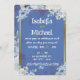 Make a striking statement with this elegant and sophisticated invitation! This design features a rich, deep moody blue watercolor background contrasted beautifully by a sleek rectangular metallic gold frame and romantic clusters of icy blue and white watercolor florals in the corners.