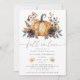 Este diseño presenta una elegante calabaza acuática rodeada de flores y follaje de otoño oscuro. Perfecto para las duchas nupciales de otoño.