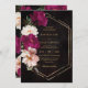 Personalice esta elegante invitación de boda fácil y rápidamente. Simplemente haga clic en el botón Editar usando herramientas de diseño para editar el texto, cambiar fuentes y colores de fuentes. Con hermosas flores realistas de fucsia, rosadas calientes y rosadas de peonía en un fondo oscuro. Elementos coincidentes disponibles en el almacén. c) Somerset Fine Paperie