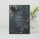 Embrace the allure of dark romance with this stunning botanical arrangement created for the sophisticated digital marketplace. This design features large, velvety matte black rose blooms nestled among delicate silver-toned metallic leaves, set against a rich, charcoal-textured backdrop. The minimalist rectangular frame with subtle corner scrollwork adds a touch of modern sophistication to the moody. As a wedding invitation, this piece is perfect for an elegant winter ceremony, a formal black-tie event, or a romantic gothic celebration. It invites your guests into a world of timeless luxury and deep, dramatic beauty. This striking floral imagery is a bold choice for any refined social event or high-end creative brand project.