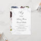 Moody y caótico en una paleta de colores de moda de colores frescos de joyas, nuestra invitación a la boda Moody Jewel Tone Floral incluye flores acuarelas en tonalidades frescas de navío, borgoña y rosa claro, enmarcando los detalles de su boda con letras clásicas de color negro. Las invitaciones en la parte trasera muestran un impresionante patrón floral en la coordinación de los tonos de joyas.