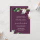Esta morada morada de ciruela es una invitación casera tradicional perfecta para un boda moderno. El elegante diseño floral presenta flores de tulipano moradas de ciruela oscura y blancas con hojas de color verde esmeralda y acentos de hojas de oro.
