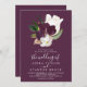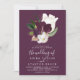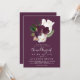 Esta morada morada de ciruela es la invitación a una boda perfecta para un boda moderno. El elegante diseño floral presenta flores de tulipano moradas de ciruela oscura y blancas con hojas de color verde esmeralda y acentos de hojas de oro.