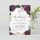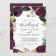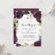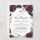 Esta invitación a la boda morada en flor morada es perfecta para un boda moderno. El elegante diseño floral presenta flores de tulipano moradas de ciruela oscura y blancas con hojas de color verde esmeralda y acentos de hojas de oro.