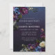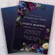 Las flores púrpuras profundas con brotes de blanco y azul crean una pálida paleta de invierno. Están enclavadas en follaje verde oscuro y negro. El fondo de la acuarela azul oscuro le da un ambiente gótico y enmarca las flores perfectamente. También hace que el texto blanco aparezca. Esta invitación de 40 años es descargable e imprimible. Todo el texto es editable, así que puede personalizarlo para obtener la apariencia que desee. Además de las plantillas de papel, hay plantillas para materiales de fiesta, carteles de bienvenida y decoraciones.